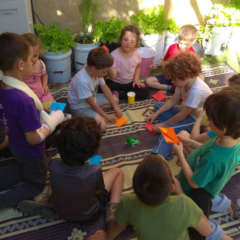 שלב אחרי שלב הוא מסביר, ומקפל, ועובר בין כולם לראות שעשו נכון ושכולם באותו שלב הוא עובר לקיפול הבא.