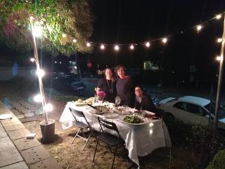 בראש ובראשונה הגעתי לשבוע לסן פרנסיסקו. גרתי אצל יעלי ואצל עליזה, ותכננו לערוך ארוחת יומולדת טעימה במיוחד. אחרי שיטוט בסופרמרקט העצום והמופלא, כמו שאמריקאים יודעים לעשות הכל ובגדול, קנינו מצרכים והתחלנו לבשל. להיות במטבח עם עליזה זו זכות גדולה מאוד! שפית עולה בשמי החוף המערבי, על דבר שהיא נוגעת בו הופך לקסם. ערכנו שולחן בחצר, תלינו גרלנדת אורות וישבנו לאכול בנחת ארוחה סופר טעימה.